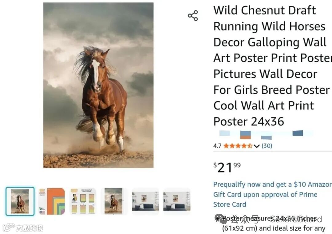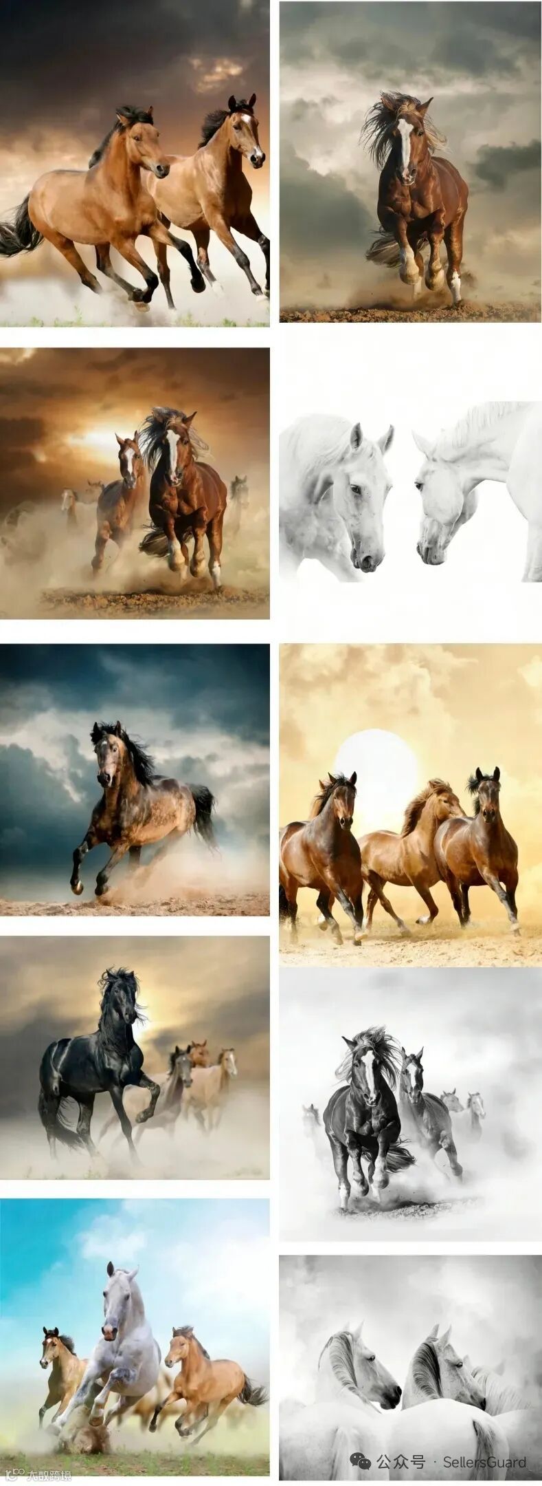 本次据称共起诉164家跨境店铺,以亚马逊、Etsy等平台为主,被告名单暂未公开。涉案10幅马类版权图,装饰、家居类卖家请速自查下架,避免账户冻结。