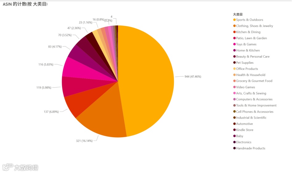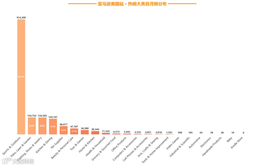 热销商品主要集中在少数几个大类目,其中运动户外类目占据绝对主导地位,无论商品数量还是销售规模均排名第一,是世界杯流量和销量的核心承载品类,足球、球迷装备等全部归属于此,他的商品数量占比接近50%,其中运动户外类目占据绝对主导地位,无论商品数量还是销售规模均排名第一,是世界杯流量和销量的核心承载品类。其次就是Clothing, Shoes & Jewelry,很多球迷都会买喜欢的球队的球服。因此球迷球衣、主题服饰、配饰等是成为世界杯核心需求,是世界杯周期内的刚需品类。