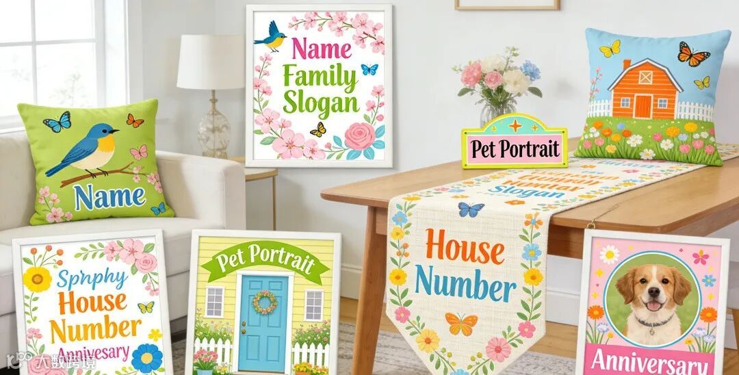 定制化卖点:姓名、家庭标语、宠物肖像、门牌号、纪念日,溢价空间 30%–80%