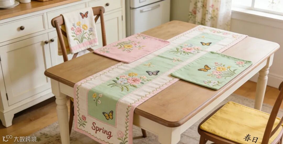3. 桌旗 / 餐垫 / 厨房巾:餐桌春日仪式感,高频复购