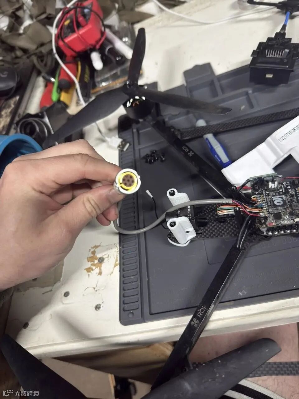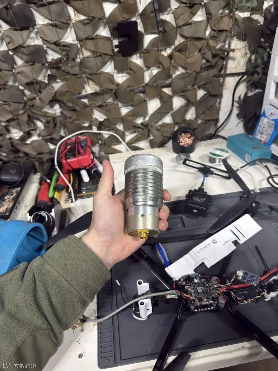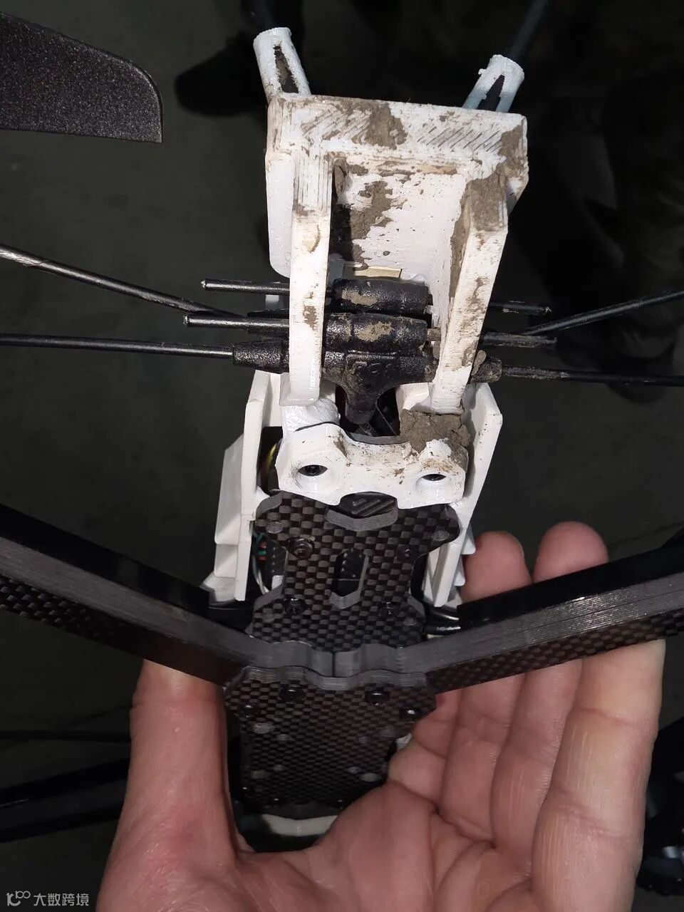无人机携带的弹头大约重800克。装备了Walksnail数字图传系统和RadioMaster XR4 Gemini Crossband(双频)遥控接收器。