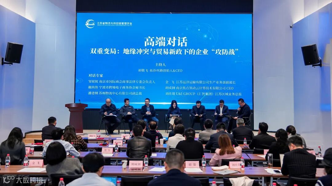 高端对话环节,由跨境专委会执行主任委员胡敬飞主持,汇智集团江苏区域业务总监刘佳琪与南京市国际商会法律部部长邹锐锐、江苏远洋运输有限公司业务部部长金飞等专家,围绕地缘冲突下的物流应对、国际税则变化与合规应对等方向展开研讨。