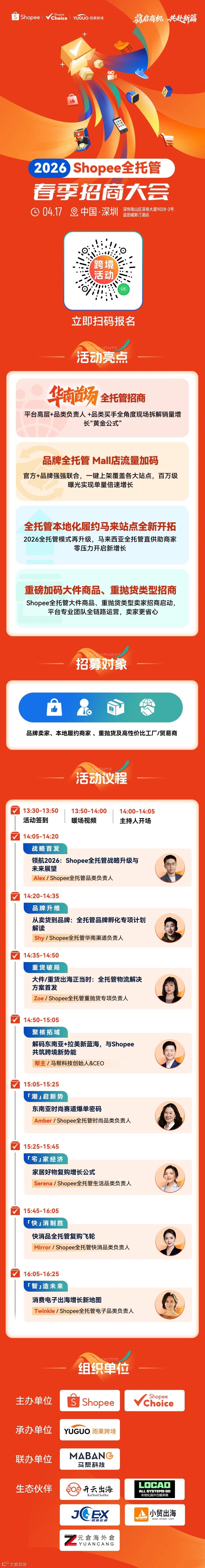 2026年,Shopee全托管模式全面升级,针对产业带白牌商品、重抛货及品牌商家推出专项激励。4月17日深圳将举办全托管华南首场招商大会,助力商家抢占上半年黄金窗口期。