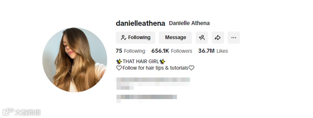 例如TikTok上的美妆个护垂类达人@danielleathena,她以发型与头发护理内容为主,曾发布大量与发型教程、护理技巧和产品试用体验相关的视频,内容真实呈现造型效果,能够引发关注发型与美发工具的年轻女性的兴趣和互动。