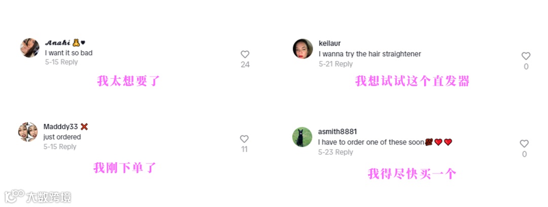 通过达人合作,Wavytalk借助其内容在TikTok获得超870万的曝光,50万的互动讨论,大量网友在评论区表示对蒸汽发梳产生兴趣,直言“想要试试”。