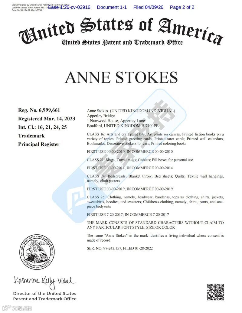 麦家支持认为,鉴于Anne Stokes以往的维权记录和 Whitewood 律所的强势作风,本次案件极有可能引发大批量爆发。跨境卖家务必对涉及 Anne Stokes 艺术作品的海报、服装、收藏品、家居装饰、配饰、文具等众多领域进行紧急排查,确保未使用未经授权的作品。此外,Art Ask Agency在美国还注册有商标号为6999661的文字商标,跨境卖家在经营过程中也需避免使用,以免触发 TRO冻结风险,造成不必要的经济损失。