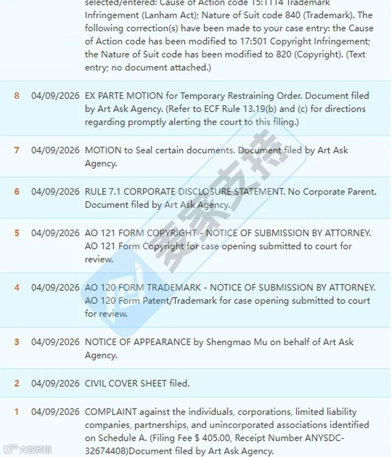 本案由Art Ask Agency委托近年来风头正劲的Whitewood律所代理,目前已在纽约州正式立案。