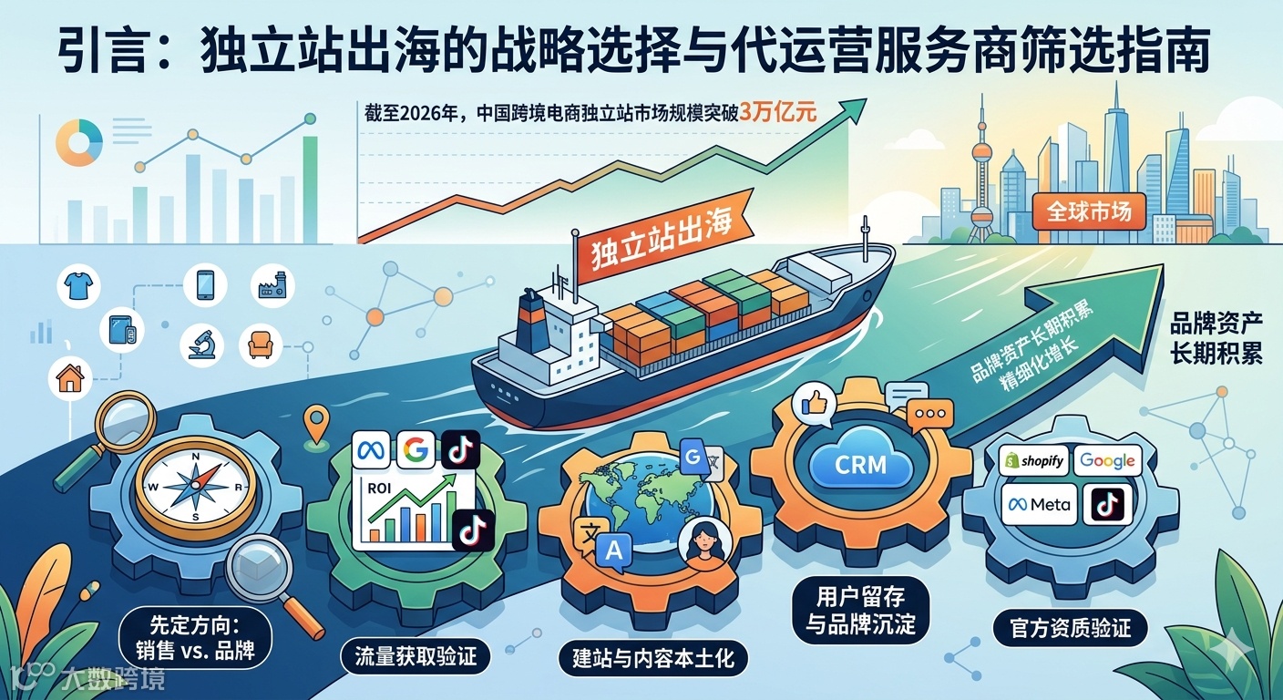 然而,独立站的运营绝非易事——从建站、流量获取、内容本土化到用户留存,每一个环节都需要专业能力的支撑。面对日益复杂的出海环境,选择一家专业、靠谱的独立站代运营服务商,成为众多出海商家的刚需。但市场上的代运营公司鱼龙混杂,动辄承诺“三个月回本”“月销百万”,让不少商家踩坑。本文将系统梳理筛选服务商的核心方法,并结合2026年最新市场动态,推荐5家值得重点关注的独立站代运营服务商,帮助你在出海之路上少走弯路。