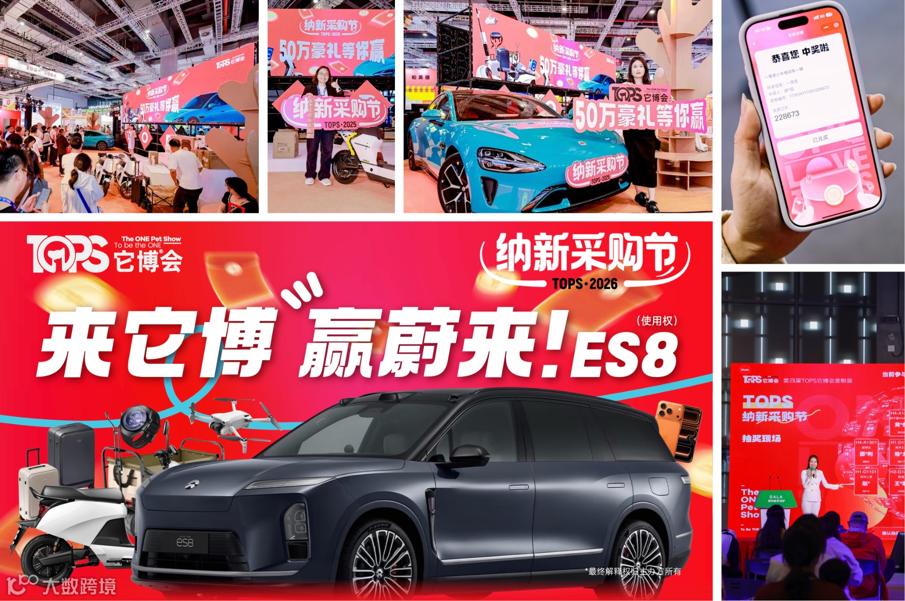 2024年创新首推纳新采购节,通过数字化创新和平台补贴机制,让观众在展会看品之外更多采货乐趣。从第1年的五菱到第2年的小米SU7,今年纳新采购节又将带来什么惊喜?参与2026它博纳新采购节的买家,将有机会抽得销冠SUV车型蔚来ES8一台!更有包括电瓶车、吸尘器、投影仪等在内的千件好礼,现场下单2000元即得抽奖券。