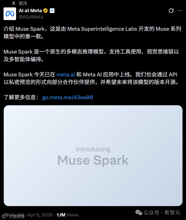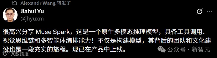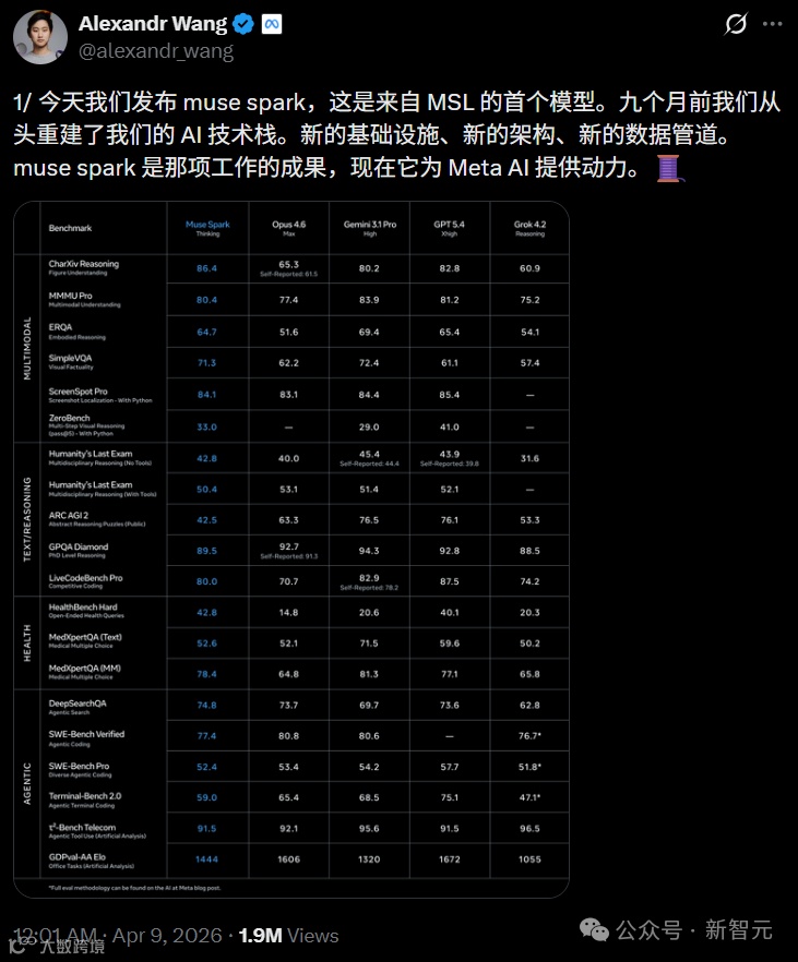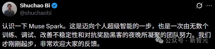九个月前我们从零重建了整个AI技术栈,新基础设施、新架构、新数据管线。Muse Spark就是这些工作的成果。