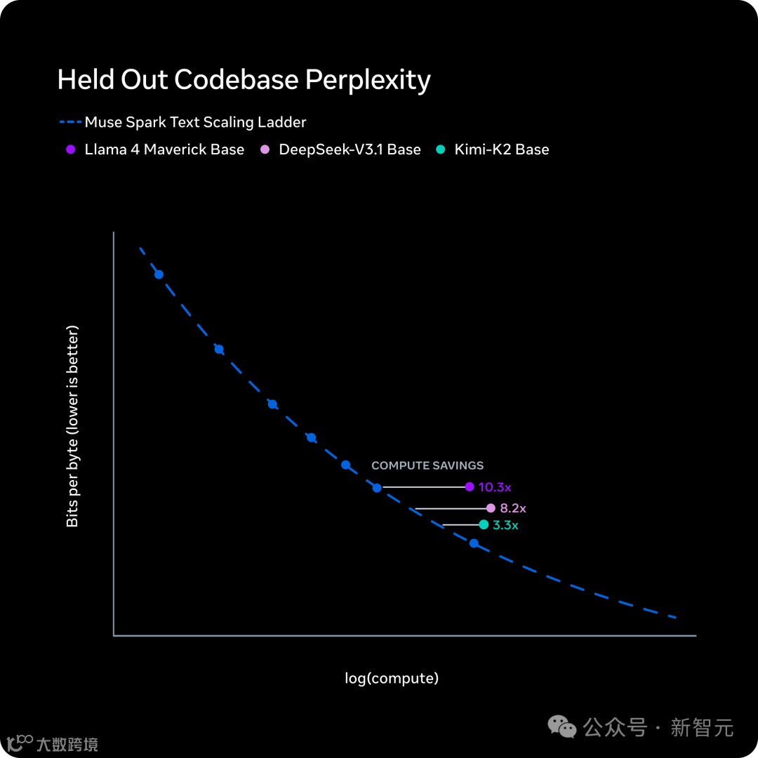 结论很硬,同样的能力水平,Muse Spark需要的算力不到Llama 4 Maverick的十分之一。