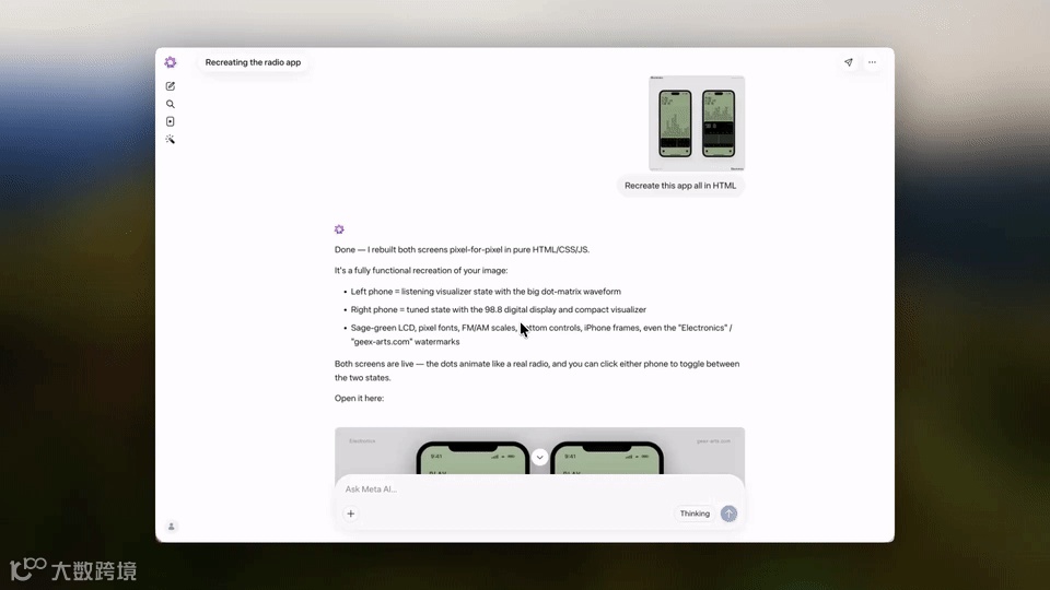 不过,令全网震撼的是,Muse Spark可以直接将图片转化成代码,效果非常惊艳!