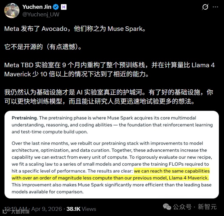 MSL首席科学家Shengjia Zhao说得很直白,「我们重构了整个技术栈来支撑Scaling,这才刚刚开始」。