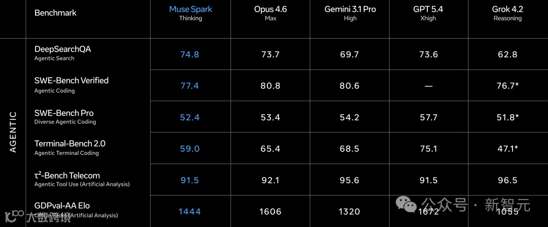 Meta自己也承认了,在代码和长时间Agent任务上,Muse Spark和最强模型还有差距。