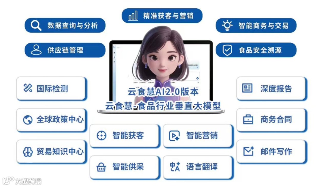 在商务部国际贸易经济合作研究院、中国食品土畜进出口商会的指导支持下,云食界联合中国移动、基流科技及多所高校、科研机构,共同研发出全球首个聚焦食品农产品国际贸易的垂直领域AI大模型——云食慧,该模型已成为食品贸易行业数字化升级的核心引擎。云食慧AI依托120多个国家的产业数据库、18大类食品分类标准及海量贸易数据优化训练,建成5大模块、11个智能体,具备多语言、跨标准、智能化、全链路四大核心优势,可为全球食品企业提供从信息查询、市场分析、获客营销,到交易管理、供应链协同、安全溯源的全周期数字化服务,助力行业企业加速数智化转型,全力打造食品贸易领域首个国家级AI大模型应用示范平台。