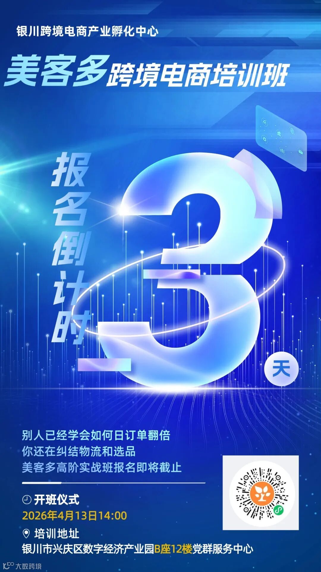 银川跨境电商产业孵化中心【美客多跨境电商培训班】将于4月13日14:00开启!