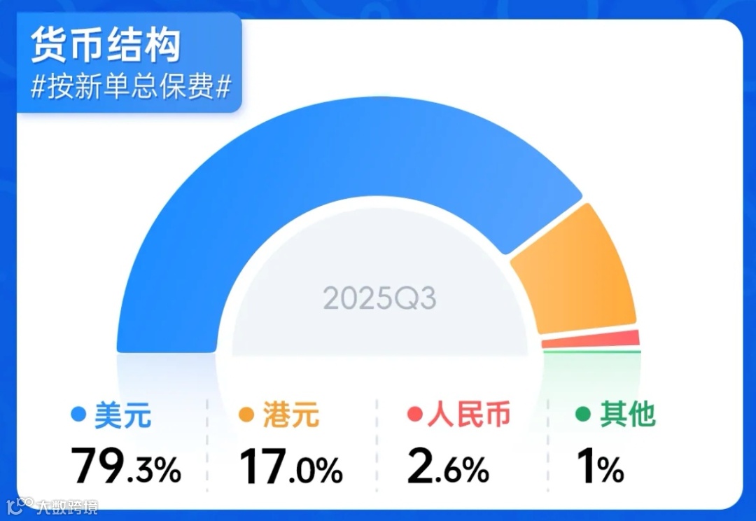如果我们去翻看香港保险的市场数据,会发现美元保单依然占据着绝对的“C位”。无论是从保单数量还是保费金额来看,美元都是当之无愧的老大(下图为2025年Q3香港保监局最新数据)。