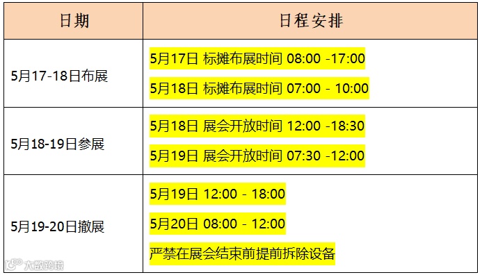 1、请各展商严格遵守展会时间要求,每日按时进馆,闭馆后退场。