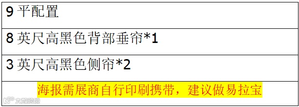 1、参展企业不得在展板上钉钉子或打孔。展商自带的不干胶宣传画不得直接张贴在展板上,请使用易于清理的透明胶材料。确保所有展具的清洁和完整。如果出现不干胶宣传画污损展板的情况,会发生罚款的情况,请注意。