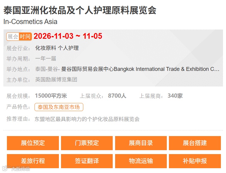 泰国亚洲化妆品及个人护理原料展览会