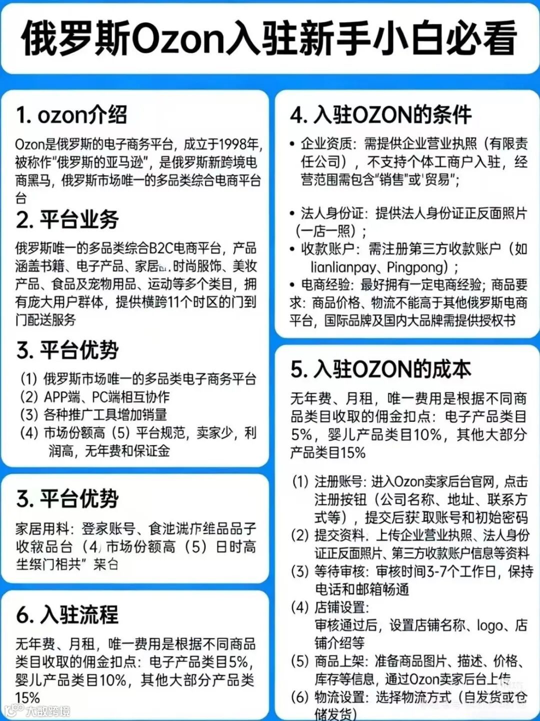 对于想要布局跨境电商的新手来说,俄罗斯市场凭借庞大的消费需求、较低的竞争门槛,成为当下出海的热门选择,而Ozon作为俄罗斯电商的标杆平台,更是新手入局俄跨境的首选。今天就为各位小白带来超详细的Ozon平台全解析,从平台基础、核心优势,到入驻条件、成本、流程,一站式讲透,新手收藏这篇就够!
