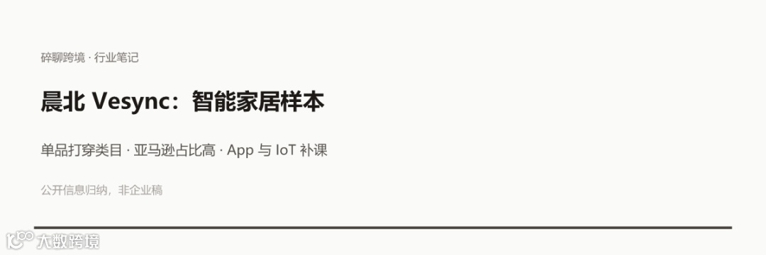 导读:当我们讨论大卖,很多人想到的是铺几万个SKU的华南城玩家。但在智能小家电赛道,晨北科技(Vesync)提供了一个完全不同的观察切片——它极少铺货,极度依赖亚马逊单一平台,甚至将自己的命运与AWS物联网深度绑定,硬生生在红海里跑出了一家上市企业。这套“寄生式”的打法,在当下平台红利见顶的时代,还能奏效吗?