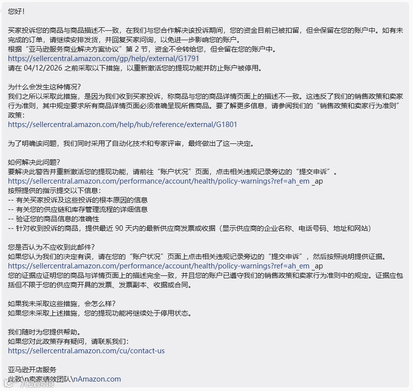 根据以上要求,需要在截止日期2026年4月12日前提交申诉。即使申诉成功,也要持续优化商品信息与供应链管理,防止问题再次发生,确保账户长期安全运营。