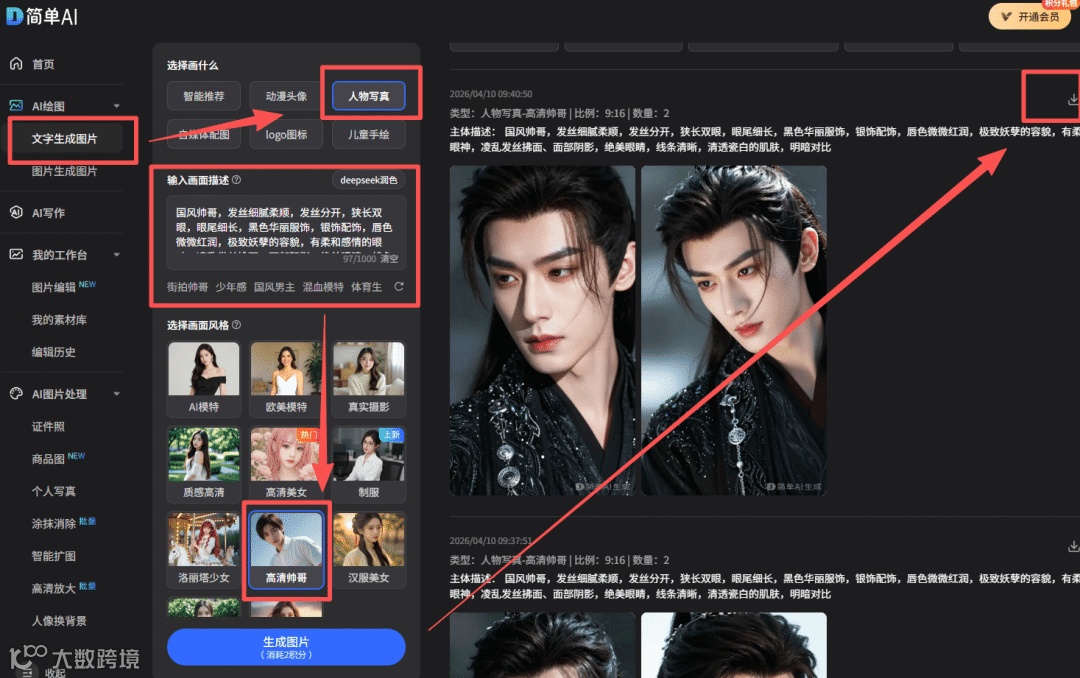 搜狐简单AI实现理想型帅哥高清写真生成