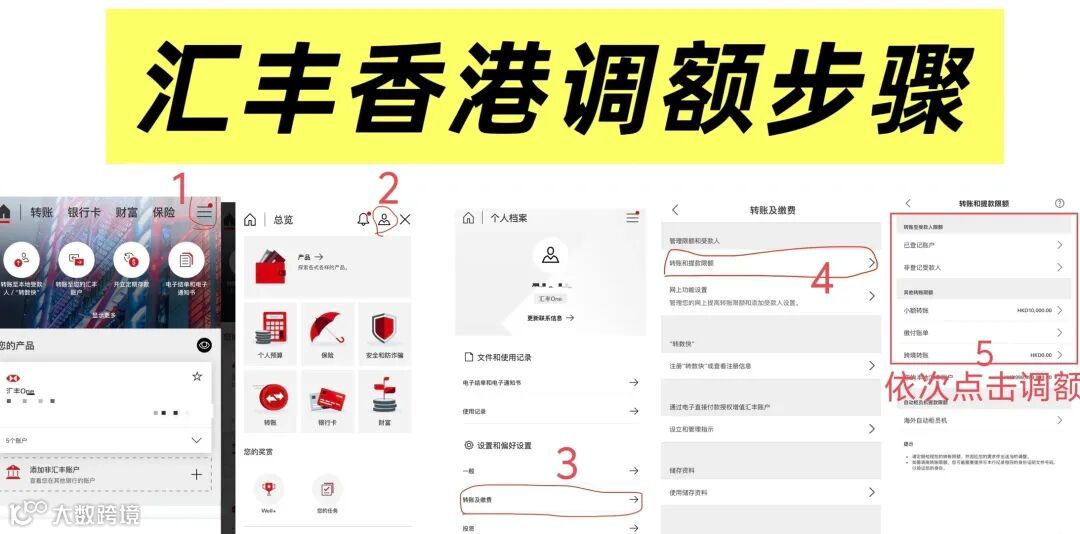 新账户默认转账额度普遍偏低(如汇丰小额上限1万港币/日),甚至未登记收款人额度为零。操作建议: