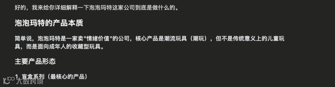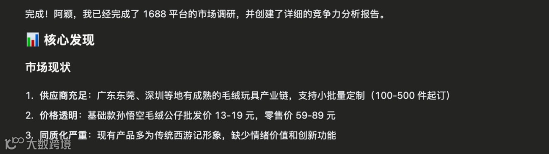 作者使用悟空完成从行业研究到落地的全流程:输入"段永平为何看好泡泡玛特",系统即时调取行业数据并生成专业分析。关键突破在于: