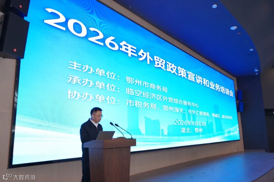 4月10日,鄂州市商务局联合临空经济区外贸综合服务中心,携手鄂州海关、市税务局等部门,在中国(鄂州)跨境电商产业园举办2026年外贸政策宣讲与业务培训。鄂城区、临空经济区近百家企业代表参会。