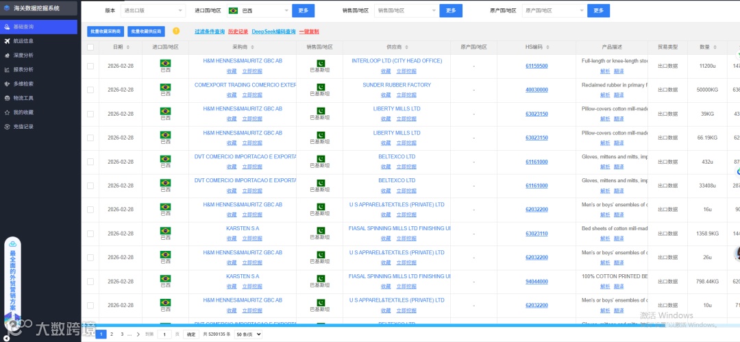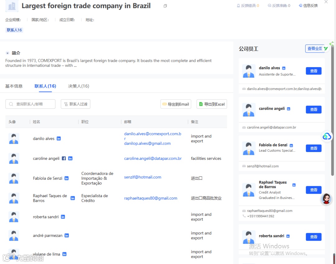 获取客户信息后,务必通过海关数据验证其进出口资质:输入企业名称即可查询该巴西采购商的进口记录、交易规模及产品详情,确保开发精准有效。