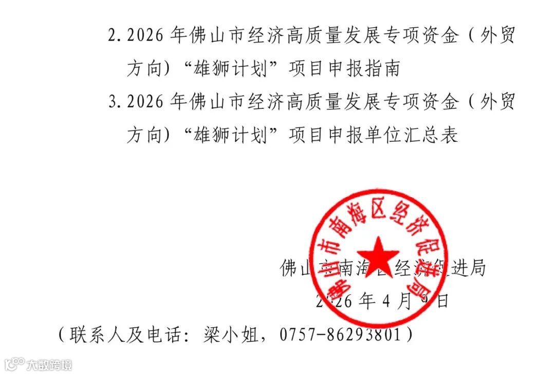 导读:佛山市商务局市级“雄狮计划”现正开展申报,请符合条件的跨境电商业务的平台/企业按时在“佛山扶持通”系统申报