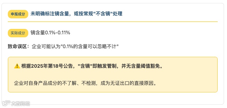 风险三:成分盲区——"含镝即管制"的阈值陷阱