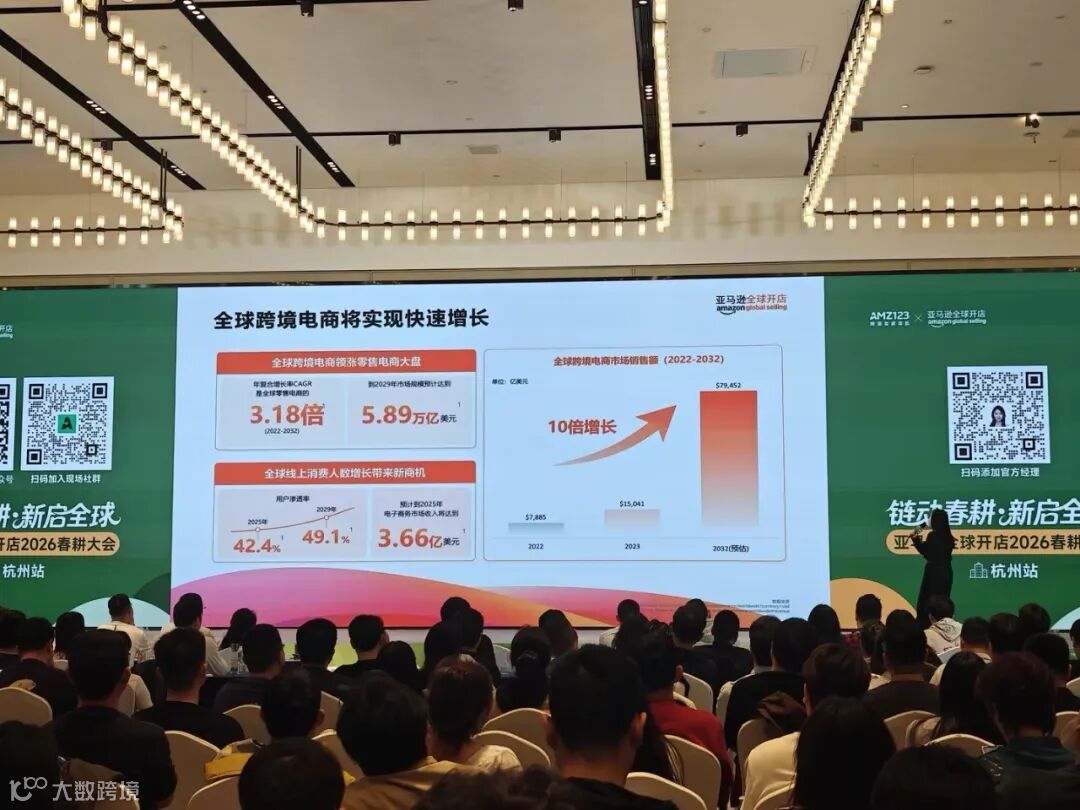 4月10日,由AMZ123与亚马逊全球开店联合主办的「链动春耕·新启全球——亚马逊全球开店2026春耕大会」在杭州召开。千余名跨境电商从业者齐聚现场,共同解读平台新政、洞察行业趋势。