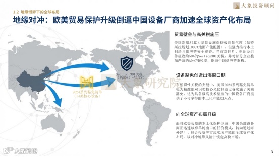 光伏增值税出口退税实施阶梯退坡:2024年12月从13%降至9%,2026年4月全面取消,彻底切断低价抢单模式,倒逼行业转向技术附加值竞争。地面补贴逐步退场,商业航天与太空算力纳入国家级新基建,政策红利完成代际切换。地缘博弈推动设备商加速海外建厂布局,HJT技术以低运维成本对冲海外高额资本支出;中国主导国际碳足迹标准制定,钙钛矿产能占全球超60%,从产品输出升级为标准输出,掌控产业链定价权。