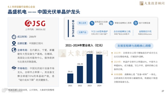 行业呈现“国产主导、寡头垄断”格局:晶盛机电VCZ-160单晶炉全球市占率超60%,支撑全球70%单晶硅产能;迈为股份HJT整线设备市占率超70%;捷佳伟创TOPCon设备市占率超65%。头部企业加速“设备+材料+工艺”一体化布局——晶盛机电延伸半导体设备赛道,迈为股份卡位HJT与钙钛矿叠层整线,捷佳伟创覆盖全电池工艺路线,凭前瞻布局太空光伏构建先发壁垒。2026年结构性扩产窗口开启,头部设备商将率先兑现历史级订单红利。