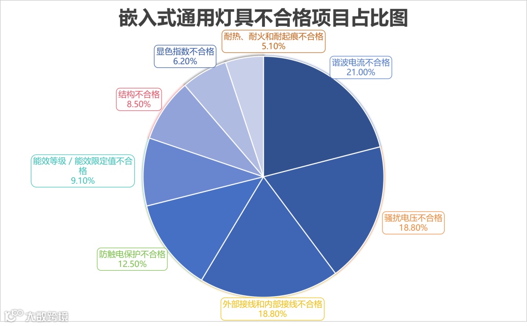 本次抽查覆盖13个省份145家生产企业、178家销售单位,抽取嵌入式通用灯具197批次,检出84批次不合格,不合格率42.6%。其中,10批次涉嫌无CCC证书生产,6批次未标注厂名厂址,2批次厂名厂址不存在,另有5批次为假冒产品。