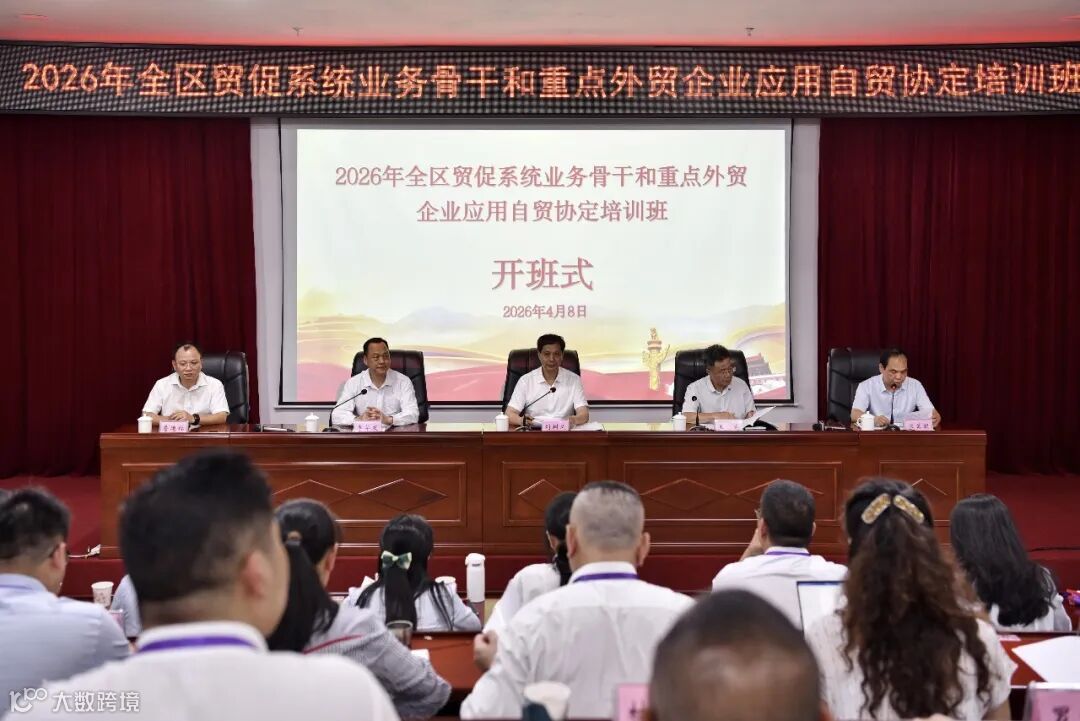 2026年4月8日至10日,广西贸促会联合防城港市贸促会在防城港市委党校举办全区贸促系统业务骨干和重点外贸企业应用自贸协定培训班。广西贸促会副会长刘树义、防城港市二级巡视员王克及市委党校副校长李华发出席开班式并致辞。全区各市贸促会业务骨干、重点外贸企业等约60人参训。
