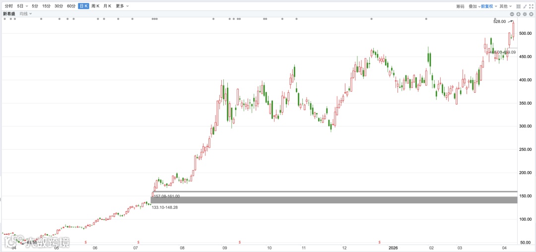 从2026年预计净利润80-100亿元、2027年200亿元的成长路径看,当前估值具备吸引力。在产业链卡位方面显著优于源杰科技等同业。