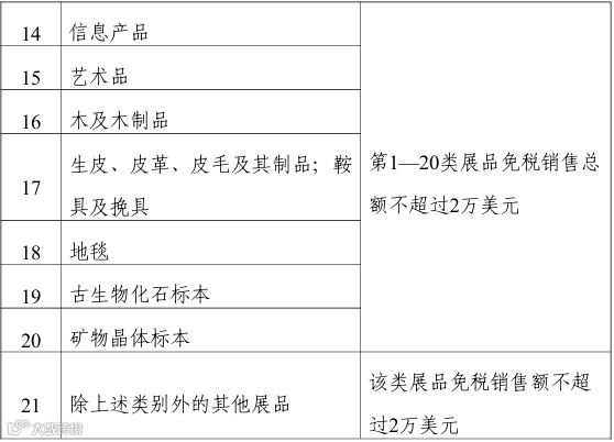 注:清单所列展品不包括国家禁止进口商品、濒危动植物及其产品、烟酒、汽车及列入《进口不予免税的重大技术装备和产品目录》的商品。