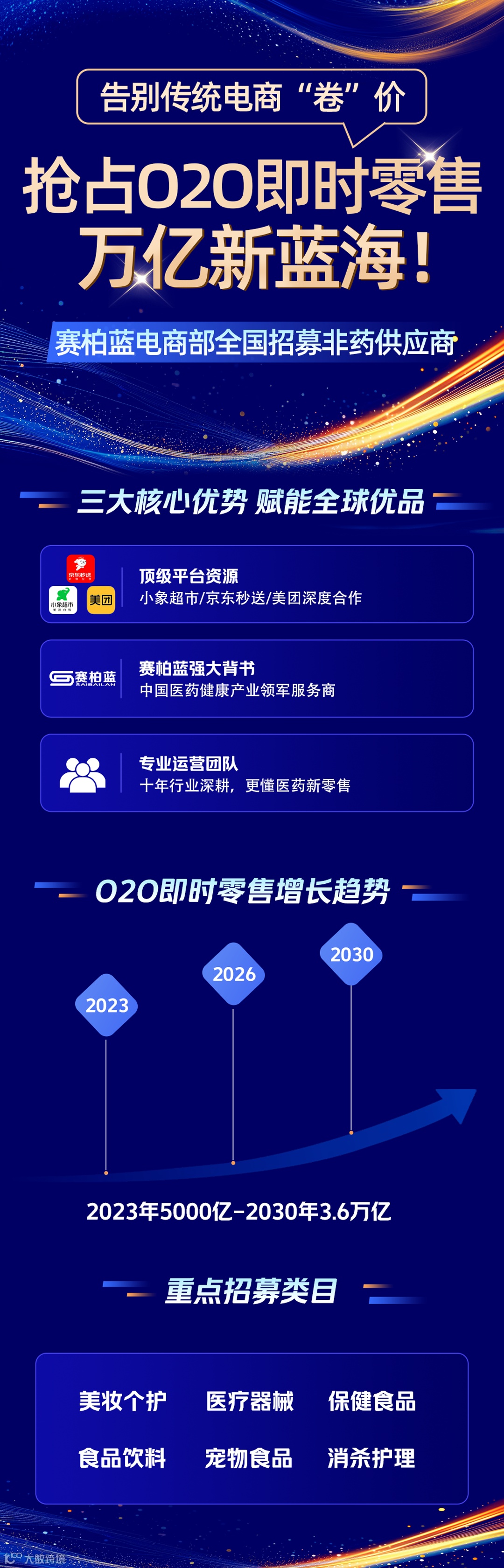 医药零售正经历"时效革命",当传统电商仍在比拼"次日达"时,即时零售已将履约时效压缩至30-60分钟。依托赛柏蓝集团深厚行业资源,我们专注运营小象超市、京东秒送、美团O2O前置仓三大核心渠道,现面向全国招募优质非药品类供应商。