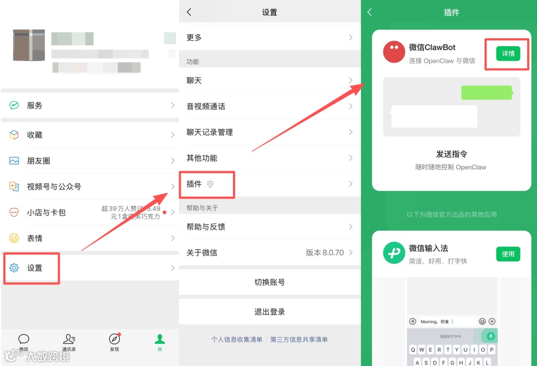 第一步:微信进入“设置”→“插件”→“详情”,获取专属接入代码。