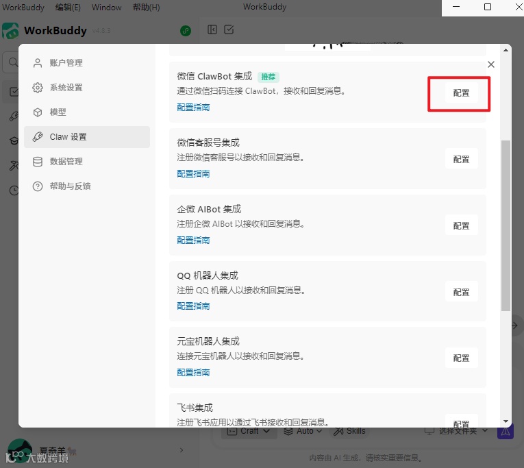 二是通过ClawBot插件,在电脑版WorkBuddy的“Claw设置”中配置微信集成,扫描弹出的二维码完成绑定。