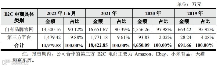 据了解,格力博于2019年开始在天猫等平台开店,2020年进行海外购物网站B2C站点的建设布局,其中在欧洲 Amazon 开设的 B2C 站点已逐步开展运营并在 2020 年第四季度实现 65.24 万元收入,2021 年实现 1,468.03 万元收入,2022 年 1-6 月实现1,212.13 万元收入,这几乎可以用“爆发式增长”来形容。