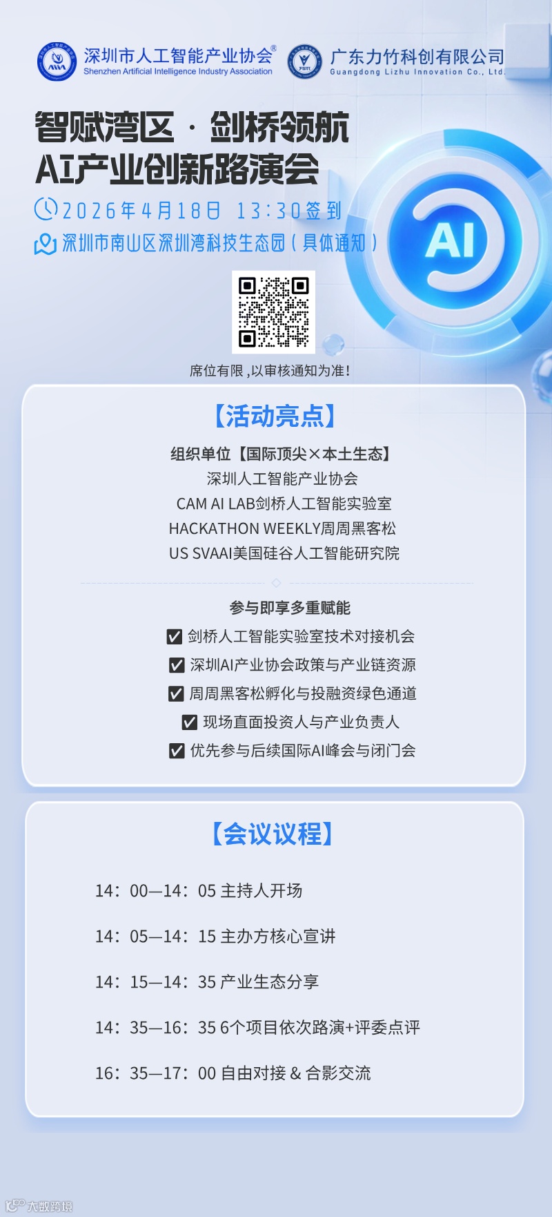 活动预告 | 智赋湾区·剑桥领航AI产业创新路演