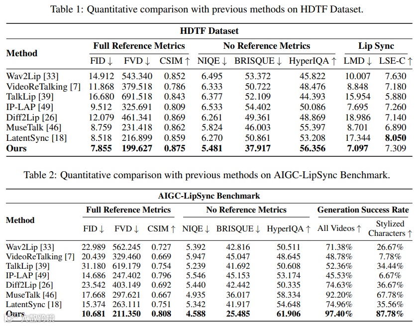 唇形同步是指将视频中说话者的唇部动作与相应的语音音频进行对齐,这对于创建逼真、富有表现力的视频内容至关重要。然而,现有方法通常依赖于参考帧和遮罩帧修复,这限制了它们在身份一致性、姿态变化、面部遮挡和风格化内容方面的鲁棒性。此外,由于音频信号提供的条件反射弱于视觉线索,原始视频中唇形的泄露也会影响唇形同步的质量。