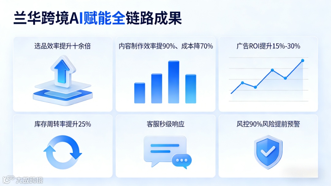 《意见》要求发展"人工智能+电商",加强大模型技术研发。兰华通过AI赋能实现选品效率提升10倍、内容制作效率提升90%、广告ROI提升15%-30%,并实现库存周转率提升25%与90%风险预警能力。