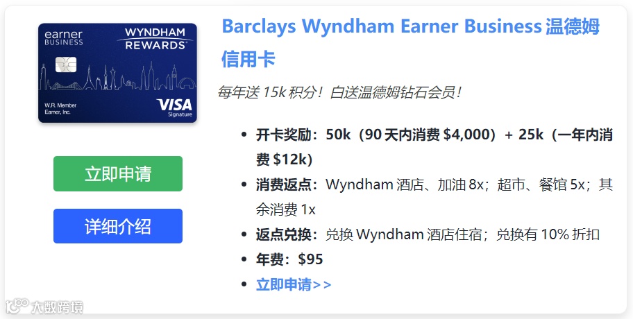 - 最易获取:温德姆钻石会籍(商务卡直接获赠)