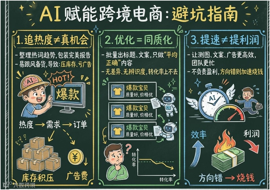 AI擅长生成数据详实、逻辑清晰的报告,易使从业者误判为可靠依据。然而“规范不等同于盈利”,热度≠需求、需求≠订单。当AI替代人做决策时,实际风险由运营者承担。